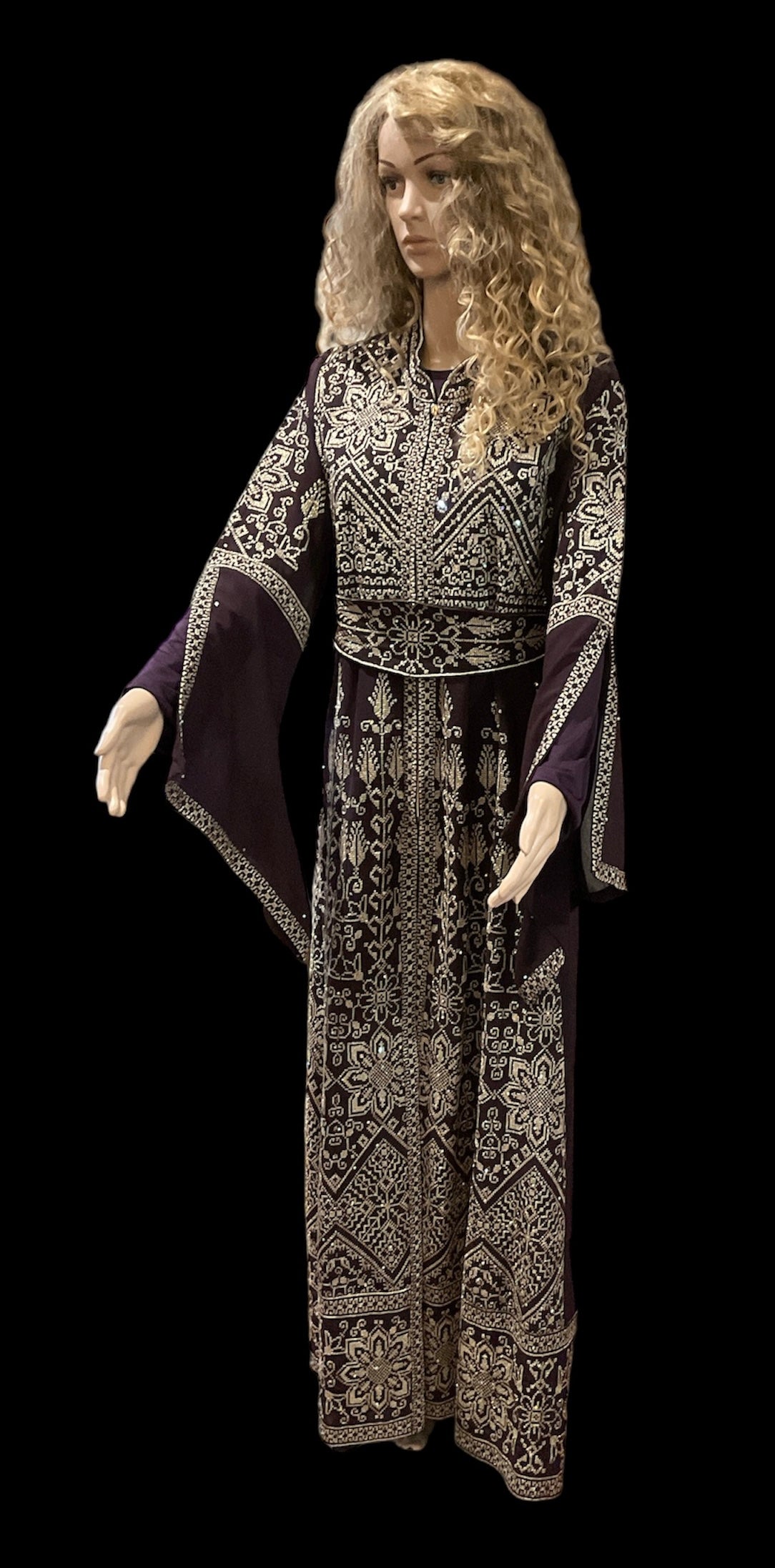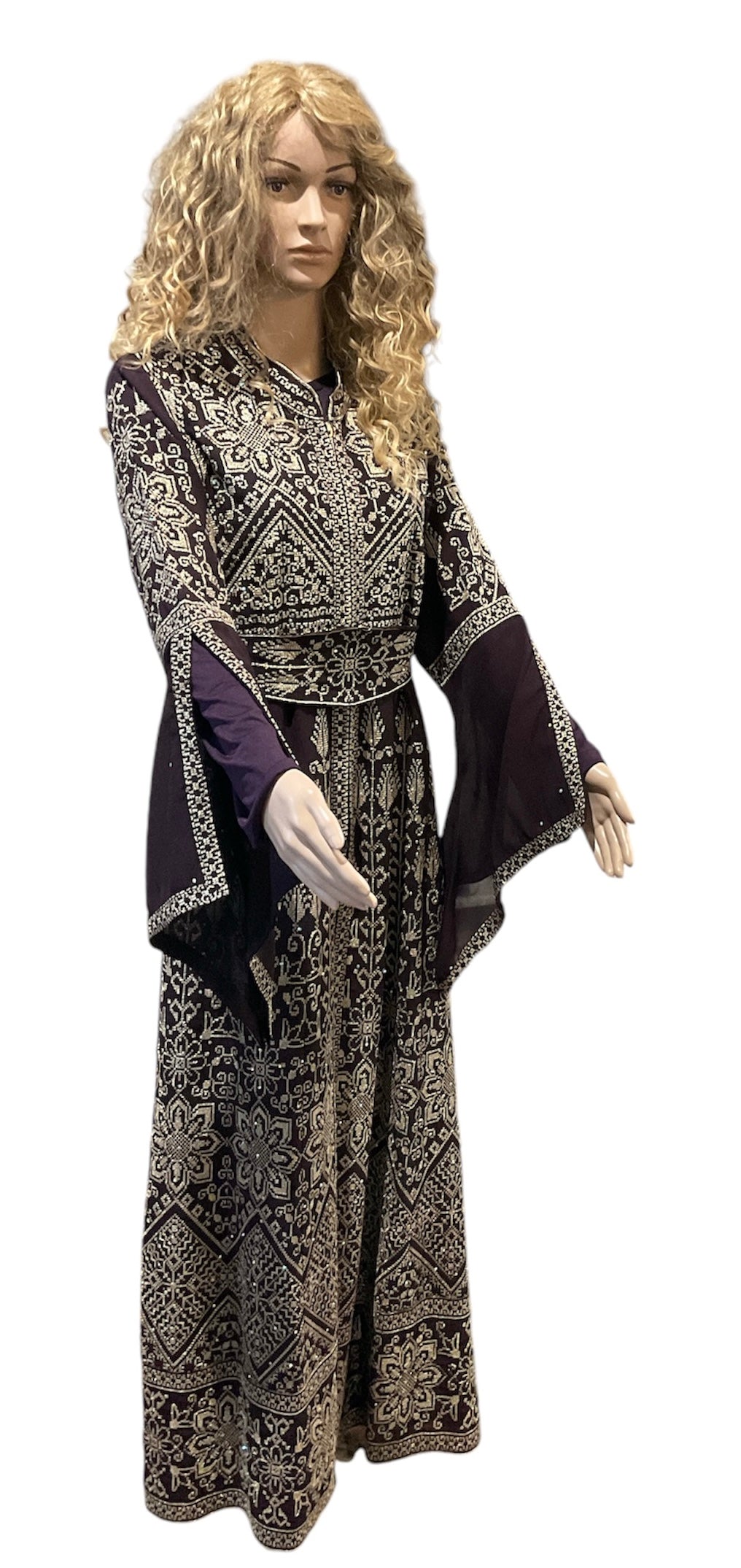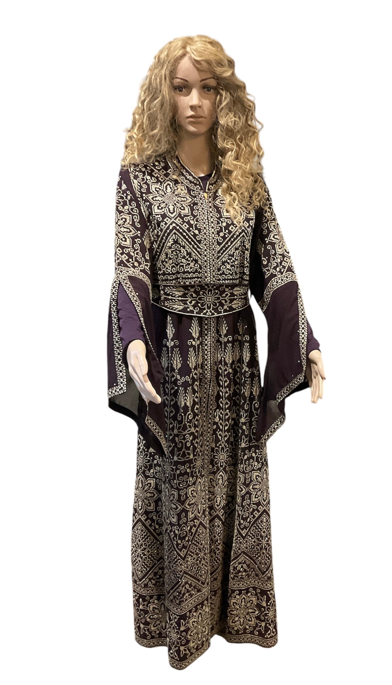 A Dress Eggplant / Gold Embroidery - Kaftan